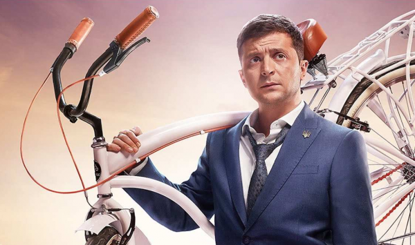 В сериале «Слуга народу» новый украинский президент Голобродько с удовольствием раскатывает по летнему Киеву на велосипеде и напевает игривую песенку: «Я люблю свою страну, люблю свою жену, люблю свою собаку…» Вскоре граждане отдали свои голоса за милейшего парня по фамилии Зеленский.
