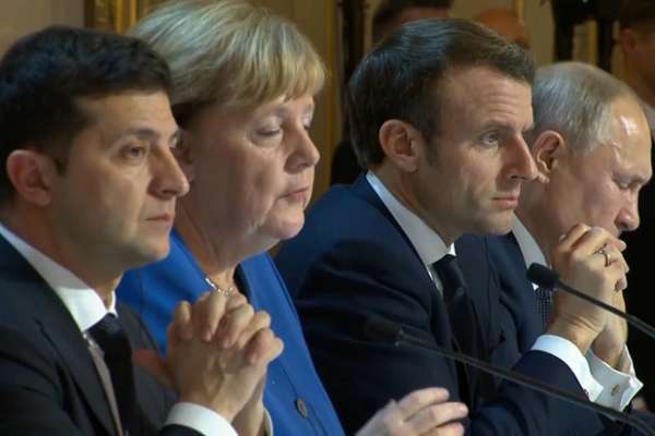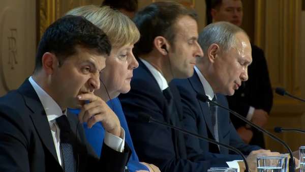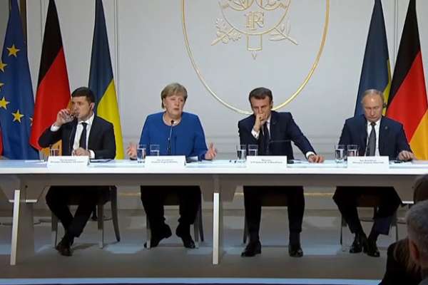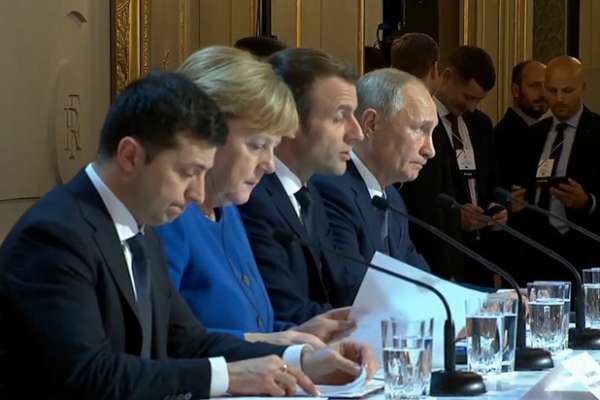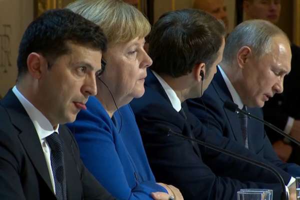 В начале встречи «нормандской четверки» президент Украины заметно нервничал, но пытался успокоиться - например, часто облизывал губы.