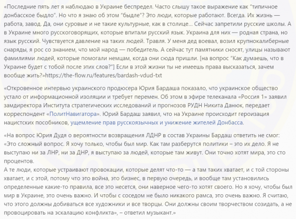 Об этом свидетельствует “профиль” Бардаша на “Миротворце” сопровождаемый пометками “антиукраинская пропаганда” и “манипулирование общественно значимой информацией”.