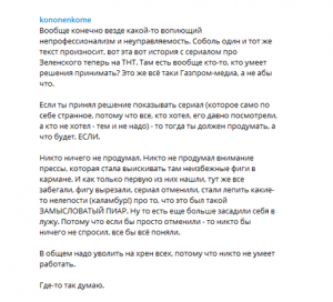 А ТНТ хочется сказать только одно: если вы не находите себе другого героя кроме Зеленского, может, вам стоит перебраться к нему поближе? И шуточками своими плоскими развлекать жителей Незалежной…