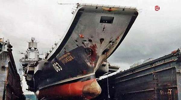 И наконец, нельзя не упомянуть прошлогодний инцидент, произошедший уже во время очередного ремонта авианосца. Упавший с плавдока на палубу «Адмирала Кузнецова» кран повредил палубу и корпус. Из-за ЧП «Адмирал Кузнецов» получил 52 повреждения на 70 млн рублей.