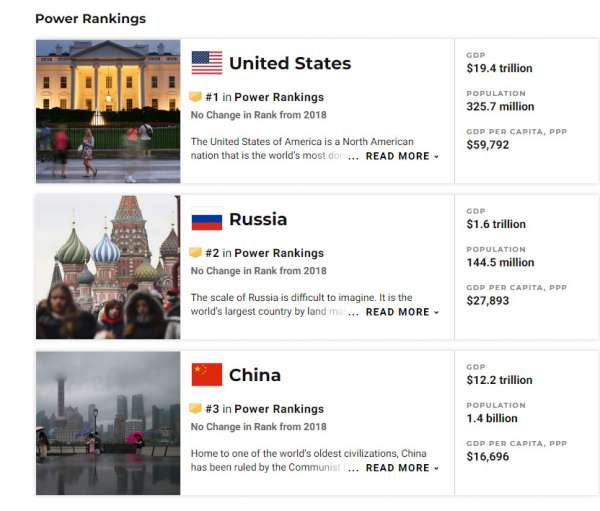 Американский журнал U. S. News & World Report опубликовал рейтинг самых могущественных стран мира по итогам 2019 года. Рейтинг возглавили США и Россия.