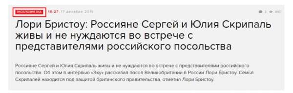 На «Эхе» появился «эксклюзив» о том, что Сергей и Юлия Скрипаль живы и здоровы, но не хотят встречаться с представителями российского посольства. Доказательств того, что у них все в порядке, нет. Впрочем, в этой истории вообще мало доказательств и много шума.