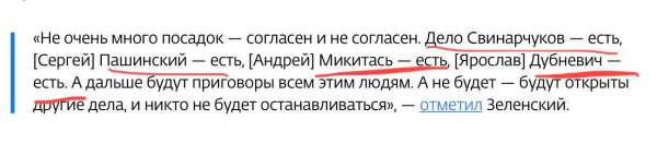 «Вспомните, как недавно Зеленский за рулём Теслы отчитывался о своих заслугах по посадкам: «Свинарчук — есть, Пашинский — есть, Микитась — есть, Дубневич — есть». И пообещал не останавливаться.