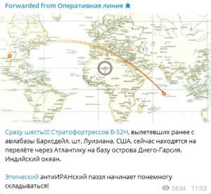 На военную базу Диего-Гарсия в Индийском океане вылетели сразу 6 бомбардировщиков B-52