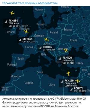 Американские военно-транспортные C-17A Globemaster III и C5 Galaxy продолжают свою деятельность на Ближнем Востоке.
