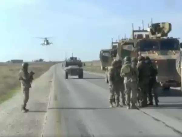На представленных в сети видеороликах можно увидеть, как российский вертолет пролетает на высоте порядка 10 метров над землей в стороне от припаркованной колонны военной техники. Такой пролет вынудил в панике убегать турецких военных с траектории полета вертолета.