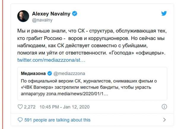 После публикации данного интервью заместителя председателя СКР о расследовании громких дел многие СМИ вычленили исключительно кусочек об убийстве в ЦАР, а наши оппозиционеры ринулись комментировать это заявление.