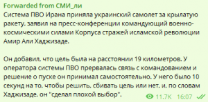 Стоит отметить, что оператор иранской ПВО имел полное право сбивать неопознанную цель над военной базой. Тем более Тегеран готовился к «ответу США» после ударов по их базам в Ираке.