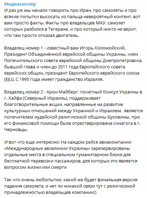 Самолет для подставы был выбран также не случайно, чтобы владельцы не были заинтересованы в объективном расследовании. Компания МАУ принадлежит украинскому олигарху Коломойскому, а самим «Боингом» владеет британский подданный.