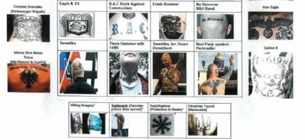В визуальном разделе руководства по выявлению знаков и символов праворадикальных групп, в секции «тату», опубликован герб Украины под названием «Украинский тризуб (националистический)». Указанное изображение размещено рядом с нацистской символикой.