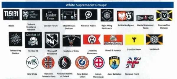 А в разделе организаций, которые исповедуют идею доминирования белой расы, приведена символика полка «Азов».