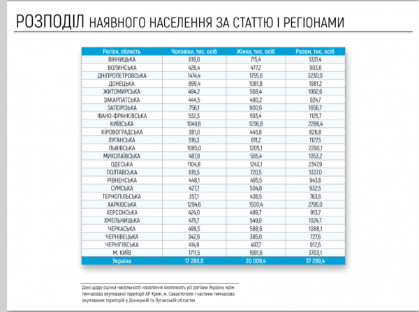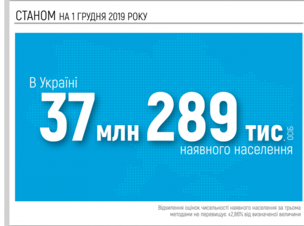 Согласно данным так называемой электронной переписи, население Украины составляет 37 млн 289 тыс. человек.