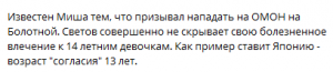 Призывы нападать на правоохранителей и лекции о свободном ношении оружия – всё это риторика Ходорковского, которую Светов завернул в обертку аниме-вечеринок, совмещая радикализацию молодежи и отдых с малолетними девочками.