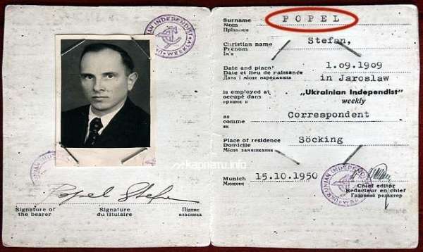 «Смотрю, разворошил я бандеровцев своими изысканиями. Раз они еще здесь, хочу напомнить, что после войны немцы выдали Бандере фальшивый аусвайс на имя Штефан Попель (допускаю, что такую кличку ему присвоили в курировавшем его гестапо). И поясняю, что Popel на немецком означает «сопляк». По-моему, красноречиво свидетельствует об отношении хозяев к агенту, не правда ли?» – добавил эксперт.