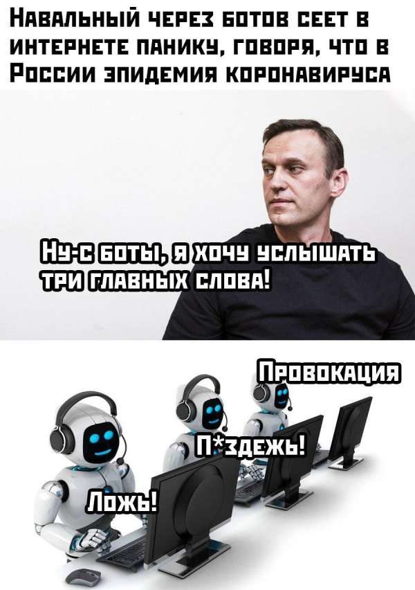 В последний раз он прицепился к коронавирусу (жаль, что не наоборот). По словам юриста Ильи Ремесло, Навальный использовал свою «ботоферму» для распространения информации о заболевших коронавирусом россиянах в Тюмени.