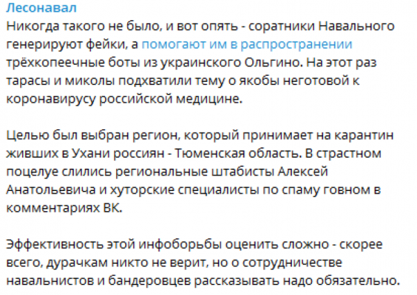 Была организована эвакуация россиян-туристов в Тюмень. Ну а Навальный подхватил эту новость, переврал ее и вбросил в тираж, так сказать. Он использовал своих ботов, попросил помощи у украинских и начал распространять новость об «эпидемии» коронавируса в России.