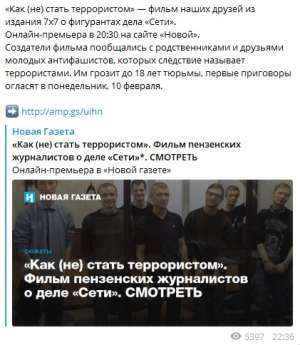 Судя по всему, бредовая деятельность «Новой газеты» не знает границ: журналисты даже распиарили фильм о террористах «Сети», снятый друзьями главреда Дмитрия Муратова.