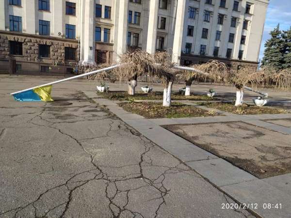 Можно было бы подумать, что всё это шутка, но нет. В Одессе, возле печально известного Дома Профсоюзов, порыв ветра обронил флагшток с желто-голубым флагом. Журналисты сразу выведали, что дело не в украинских радикала, давно не появлявшихся в этих местах.