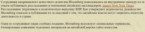 Ну и как же могло информагентство 8-го самого богатого американца, пройти мимо такой благодатной темы, как встреча лидеров России и Белоруссии? Достаточно вспомнить, как агентство миллиардера-медиакрата Майкла Блумберга пыталось обойти китайскую цензуру, блокируя материалы, компрометирующие истеблишмент КНР, на китайской версии сайта издания.