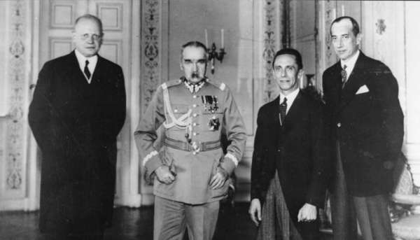 Пакт Гитлера – Пилсудского (Юзеф Пилсудский в центре) 1934 года стал первым документом такого рода, заключённым другими странами с нацистской Германией, которую Запад и поляки выращивали для войны против СССР. Фото: Globallookpress