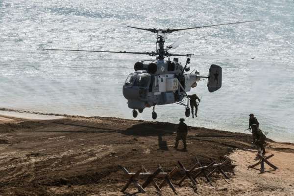 Бойцы успешно блокировали автомобиль и ликвидировали условных диверсантов. Экипаж Ка-29 оказывал огненную поддержку и прикрытие с воздуха.