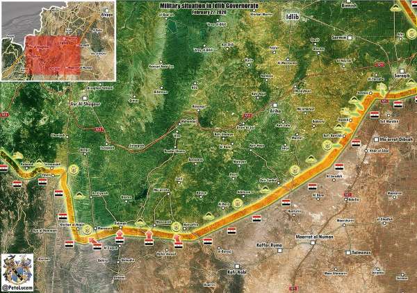 При этом ситуации в районе стратегического населенного пункта Серакиб, вновь перешедшего под контроль джихадистов и турок, остается крайне напряженной. Источники сообщают, что ВКС продолжают бомбардировки Серакиба и окрестностей, а сирийская армия начала ночную контратаку.