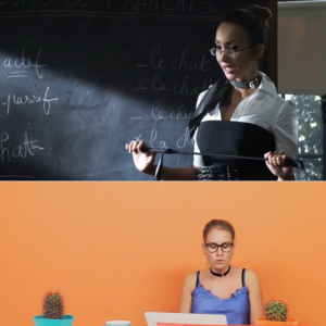 Даже одежду стали подбирать подходящую. Вот уже надевают ошейник, как на фотографиях с девушками, перевоплотившимися в учительницу. Осталось дождаться появления в кадре кожаного наряда и плеток.