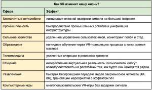 Влияние 5G технологий на жизнь людей неплохо демонстрирует следующая таблица: