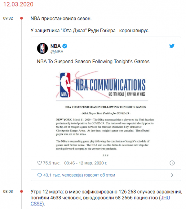 На утро 10 марта в мире зафиксировано в мире зафиксировано 126 268 случаев заражения, погибли 4638 человек, выздоровели 68 2666 пациентов.
