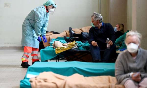 Временная больница в Брешиа, Италия. Врачи не справляются с наплывом пациентов. Фото REUTERS/FLAVIO LO SCALZO