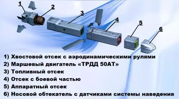 В хвостовой части установлен двухконтурный турбореактивный агрегат «50АТ» с тягой около 500 кг. Ракета способна к полёту со скоростью 1000 км/ч на высотах от 50 метров до 11 километров. Дальность полёта новой ракеты может достигать 500 км, а круговое вероятное отклонение составляет 4 метра.