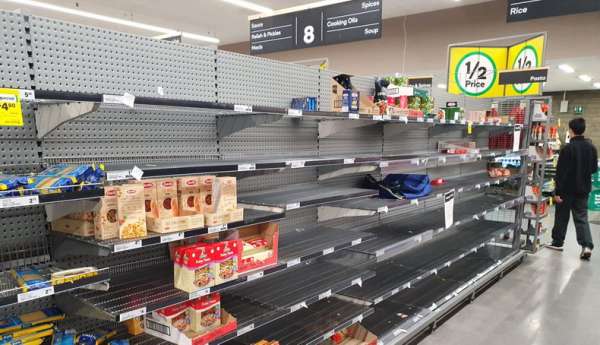Полки супермаркета Woolworths в австралийском Мельбурне после панического набега покупателей