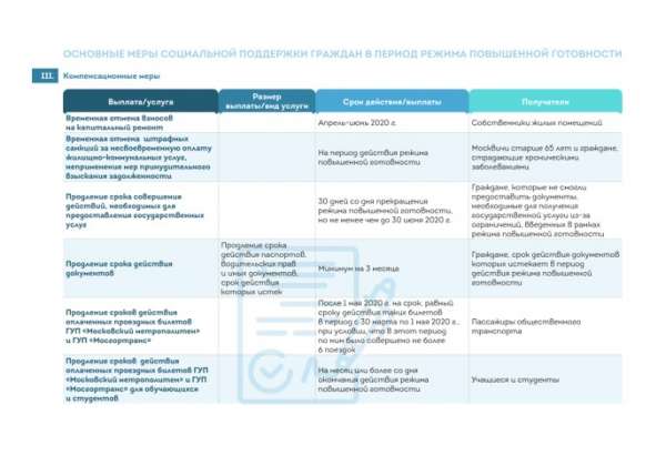 Временно отменены штрафы за просроченную оплату коммунальных услуг, а также взносы на капремонт. Введены кредитные каникулы и тому подобные меры для тех, кто остался без работы с кредитами и ипотеками.