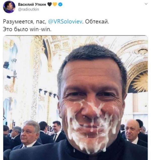 Напомним предысторию конфликта двух медийных лиц. В эфире телеканала «Дождь» спортивный комментатор Василий Уткин возмутился тем, что, по его мнению, государство в должной мере не помогает гражданам, запертым не по своей воле в самоизоляции. «Мне такое государство не нужно!», - резюмировал он. Слова Уткина задели Соловьёва за живое, и он немедленно встал на защиту власти, однако никаких доводов не привёл, кроме того, что посмеялся над внешностью оппонента. Уткин в долгу не остался и назвал звезду «России 1»…в общем, плохо назвал. Соловьёв, в свою очередь, вновь прошёлся по внешности Уткина, и вызвался оплатить ему лечение «синдрома Туретта».