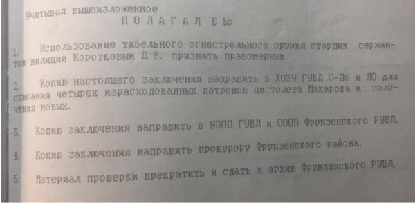 Так как в истории был замешан и руководитель Короткова, тот вышел сухим из воды. В документе о задержании написали лишь то, что оружие применялось для выстрела по колесам автомобиля во время преследования.