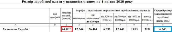 «С марта по апрель 2020 года на Украине количество свободных вакансий сократилось в пять раз – от 320 тыс. до 64тыс. А средняя заработная плата по всем предлагаемым вакансиям Государственной службы занятости Украины составила – 6.645 грн.