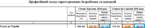 «По состоянию на январь – март 2020 г., согласно данным сайта Государственной службы занятости, количество зарегистрированных безработных в стране составило 508.4 тыс. человек при 320.7 тыс. вакансиях. Дефицит вакансий соответственно составил –187.7 тыс.