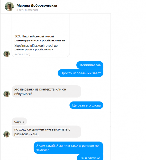 В декабре прошлого года начальник Управления гражданско-военного сотрудничества ВСУ полковник Алексей Ноздрачев заявил, что украинские и российские военные, и даже военные, которые воюют в рядах НВФ «ДНР» и «ЛНР», способны быстро «реинтегрироваться», но этому мешают «праворадикалы».