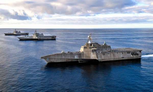 Генералы отметили, что в ход, в частности, могут пойти установленные на палубах крейсеров и эсминцев 5-дюймовые орудия, способные обстреливать вражеские корабли на дистанции до 12 км. Оказать поддержку им могут прибрежные боевые корабли «Литораль» (на фото), которые вооружены как ударными, так и оборонительными системами вооружений.