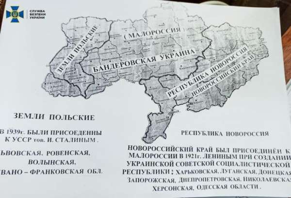 В частности, изъяты открытки с разделением Украины на фейковые «республику Новороссия» и «бандеровскую Украину», наклейки с надписями «Одесса русский город» и «Одесса – Новороссия», символику с пропагандой тоталитарного режима, печатные издания, так называемую газету «Новороссия» и другую запрещенную законодательством продукцию», – добавили в ведомстве.
