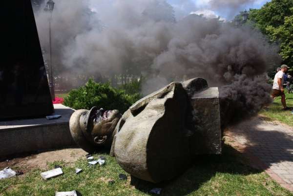 Именно тогда, пан Зеленский предал дедушку, воевавшего с фашистами...Он даже не возмутился, когда сносили памятники Жукову, под началом которого воевал его дед...