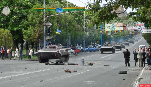 Некто полковник Лебедь, возглавлявший в то время Восточное территориальное командование, по приказу из Киева выдал всё имеющееся в арсенале оружие боевикам радикальной группировки, рассадив их даже по бронетранспортёрам. И вот эти звери 9 мая ворвались в Мариуполь на бронетехнике и принялись беспорядочно расстреливать участников праздничных мероприятий в честь Дня Победы.