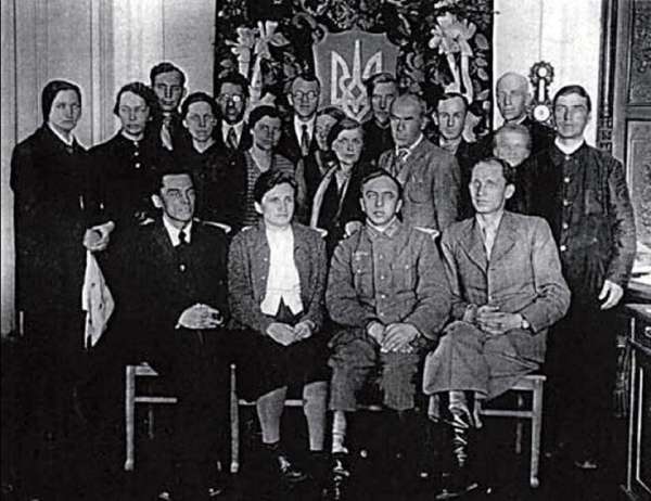 Намедни мое внимание привлекла дискуссия в одной из популярных харьковских групп в Facebook (до 40 тысяч пользователей), где была выставлена фотография сотрудников редакции харьковской оккупационной газеты «Нова Украина». Группа людей на фоне тризуба: в первом ряду человек в немецкой военной форме — редактор «Новой Украины» Петр Сагайдачный, слева сидит нынешний классик украинской литературы Аркадий Любченко, ближе к тризубу, похоже, известный филолог Юрий Шевелев, рядом с ним поэт Олекса Варавва, и прочие.