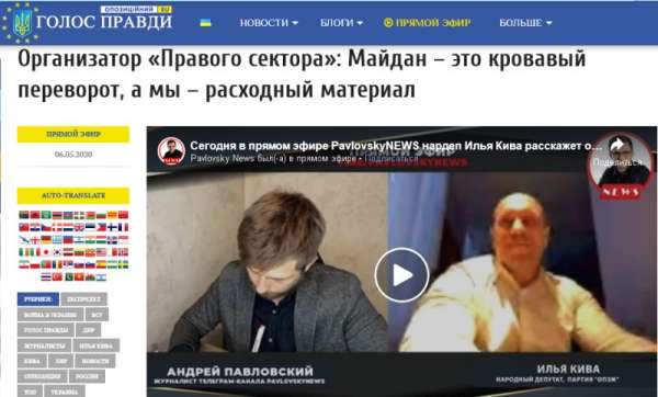 «В 2014 году кровавый переворот нам представили, как «революцию достоинства», которая должна нести за собой процветание украинского государства. Фактически людей использовали в тот момент как расходный материал для того, чтобы получить внешнее управление над нашей страной... В 2014 году мы попали под внешнее управление Госдепа, который финансировал всю эту «революцию достоинства», а затем, в дальнейшем, финансировал все националистические структуры и пропитывал нас ненавистью», – заявил Кива.