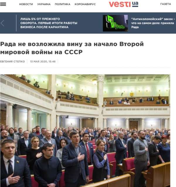 Показательным выглядит то, что украинские националисты попытались протянуть постановление, обвиняющее Советский Союз в том, что он развязал Вторую мировую войну уже после того, как министр иностранных дел ФРГ Хайко Маас однозначно признал, что только Германия ответственна за начало войны.