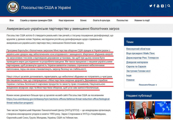 Согласно дополнительному договору, Штаты модернизируют бывшие советские, а ныне украинские лаборатории, в которых находится множество опасных вирусов, таких как сибирская язва или чума. Невооруженным глазом виден первостепенный интерес американского правительства к финансированию подобных проектов. Особенно если они основываются на секретных разработках советских ученых по созданию биологического оружия.