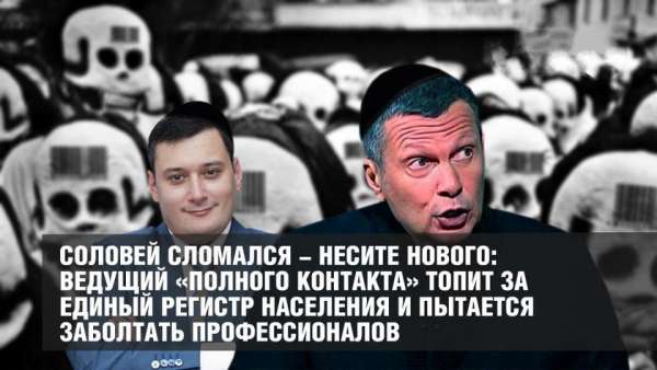 Известный своим умением колебаться в соответствии с линией партии телеведущий Владимир Соловьев, который в последнее время активно изображал патриота, вчера показал свое лицо во время передачи «Полный контакт», где в гостях у него и Анны Шафран побывал один из крупнейших в России специалистов в области искусственного интеллекта, глава компании «Крибрум» Игорь Ашманов-который накануне написал, при участии Натальи Касперской, заключение о недопустимости принятия закона о едином регистре и создаваемых им рисков для государства и личной безопасности . Естественно, говорили про цифровизацию и принятый вчера Думой закон о едином регистре населения. Хотя, как говорили – ведущий перебивал гостя. Попутно он признал наличие у нас в стране сегрегацию общества и возмутился тем, что Ашманов отказывается ставить знак равенства между чиновниками и государством.