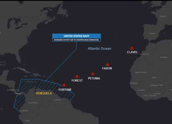 Карта зоны блокады побережья Венесуэлы кораблями ВМС США