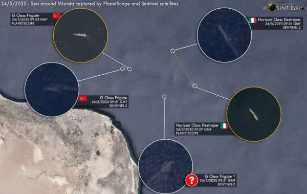 Ливийские источники сообщают о присутствии у берегов Ливии военных кораблей Турции и Италии. Эти данные подтверждаются спутниковыми снимками, на которых хорошо видно расположение кораблей.